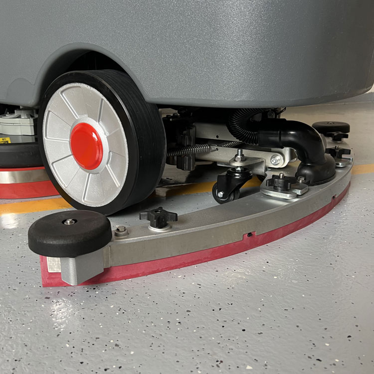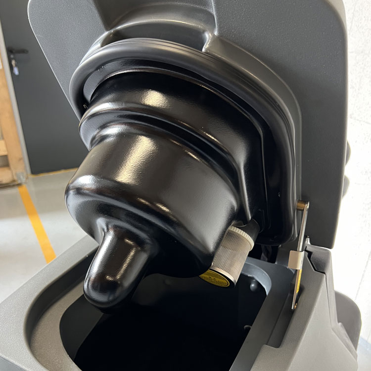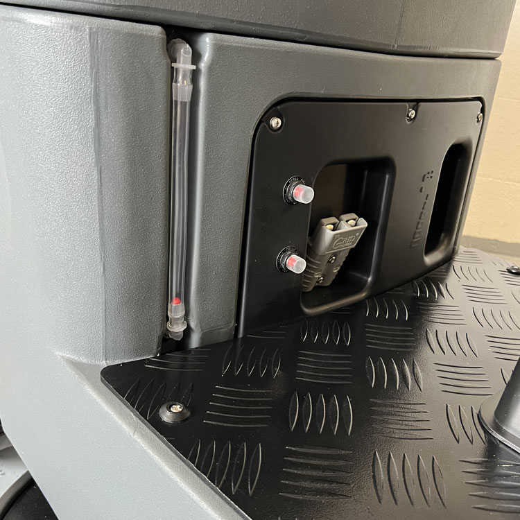 Die Maschine ist mit zwei Tanks für Frisch- und Schmutzwasser von 70 bzw. 75 Litern ausgestattet. Der Schmutzwassertank hat einen Überfüllungsschutz. Am Deckel des Schmutzwassertanks ist eine leistungsstarke Ametek-Saugturbine angebracht. Der Deckel kann außerdem fixiert werden, damit der Tank gelüftet wird. Der Saugbalken ist mit hochwertigen Sauglippen von Linatex (USA) ausgestattet, die das Wasser perfekt vom Boden entfernen.