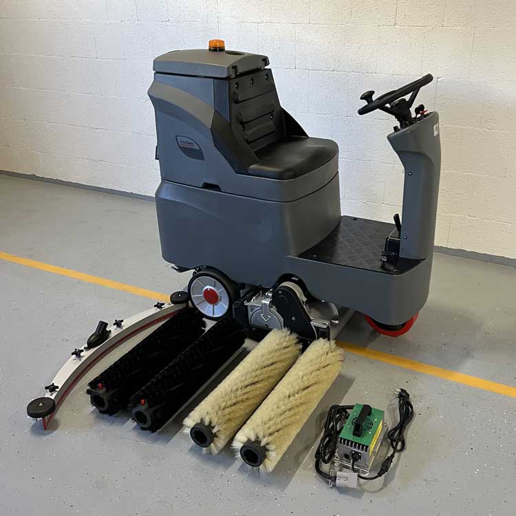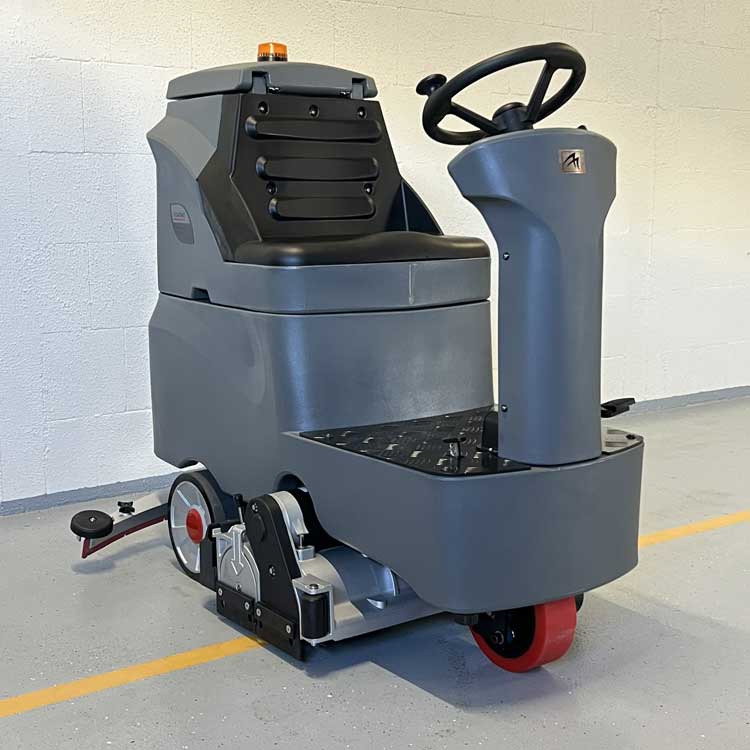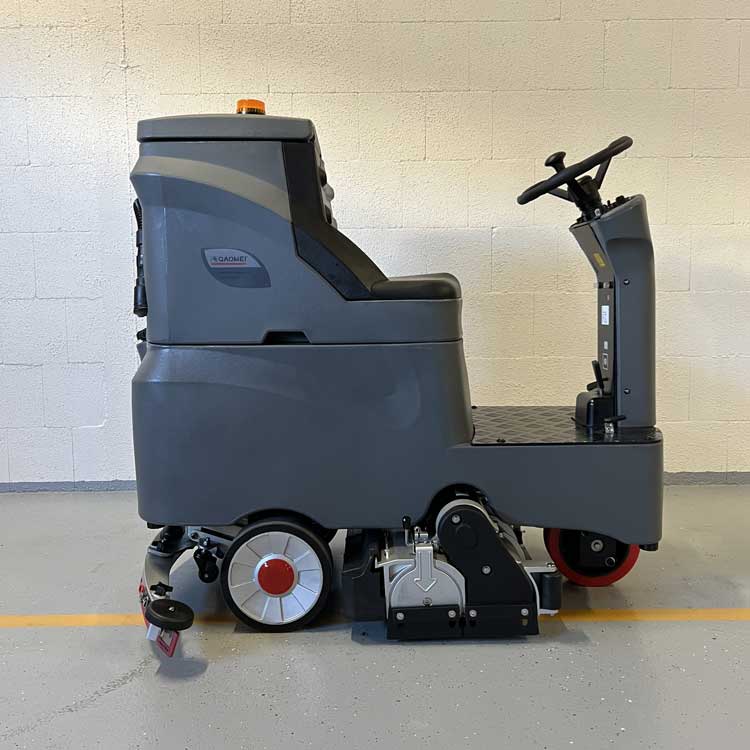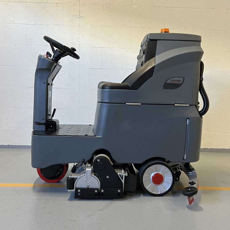 Die Aufsitz-Scheuersaugmaschine GM-RMINI bietet mit einem 650 mm breiten Bürstenblock eine hohe Reinigungsleistung von bis zu 3.900 m² pro Stunde und eine batteriebetriebene Laufzeit von bis zu 3 Stunden. Diese Maschine kann für die Reinigung von Flächen bis zu 8.000 m² empfohlen werden.