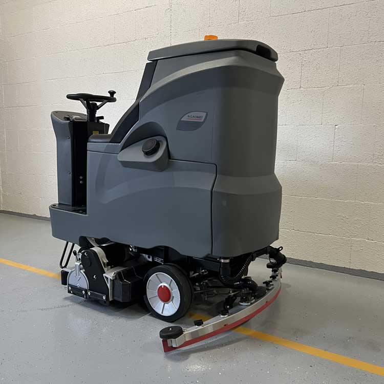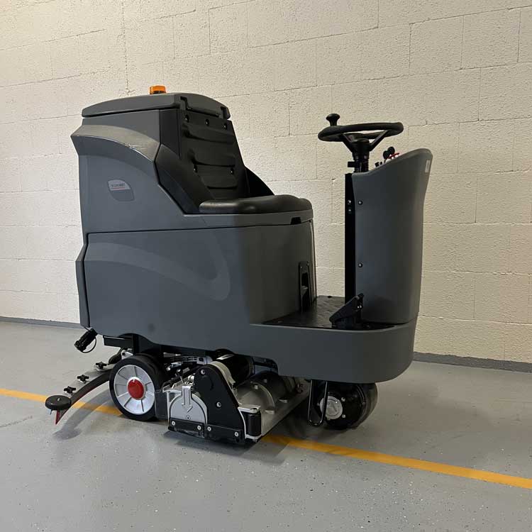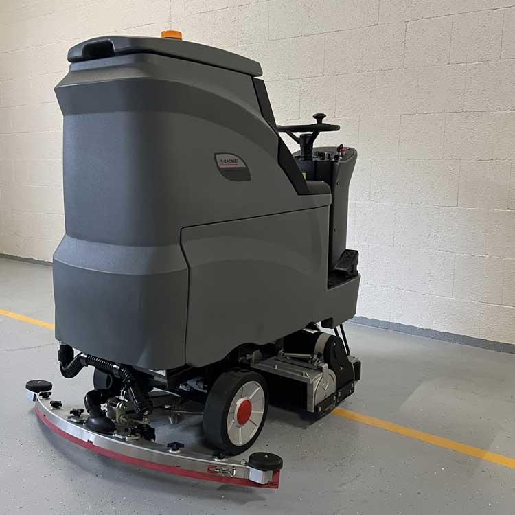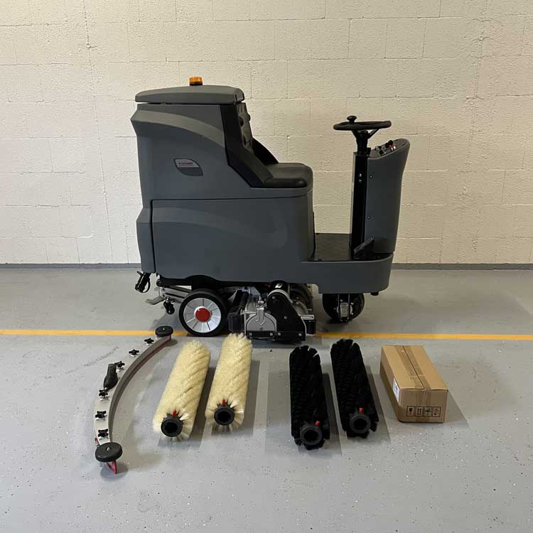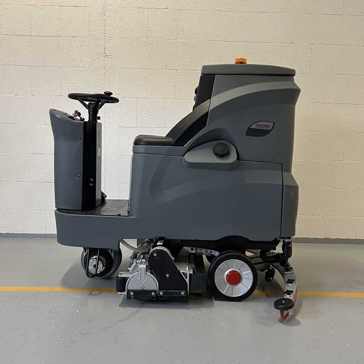 GM110BTR80 – ist eine Aufsitz-Scheuersaugmaschine mit Walzenbürsten, die wichtige Eigenschaften für den industriellen Einsatz wie leichtes Kehren, Waschen von Böden mit Reinigungsmitteln und die Aufnehme von Wasser in großen Tanks vereint. Das leistungsstarke Hochgeschwindigkeits-Bürstenaggregat mit zylindrischen Bürsten verfügt über einen elektrischen Antrieb zum Absenken und Heben sowie zur Druckeinstellung. Dies ermöglicht eine breite Palette von Anwendungen in der Industrie und darüber hinaus.