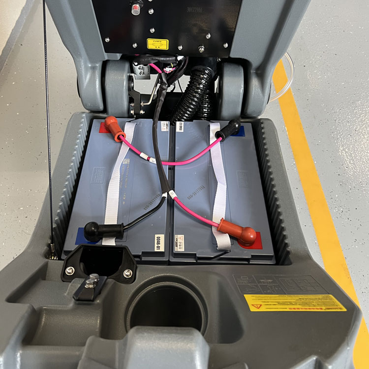 Es ist ein kabelloses Gerät, d.h. Sie brauchen kein Kabel, das bei der Arbeit immer im Weg ist. Die wartungsfreien GEL-Hochleistungsakkus mit 100Ah von der renommierten Firma Chilwee sorgen für einen zuverlässigen Betrieb der Scheuersaugmaschine von mehr als 3 Stunden, ohne dass ein Aufladen erforderlich ist. Dank des innovativen Designs der Scheuersaugmaschine ist der Zugang zu den Batterien und anderen Maschinenteilen einfach und bequem.
